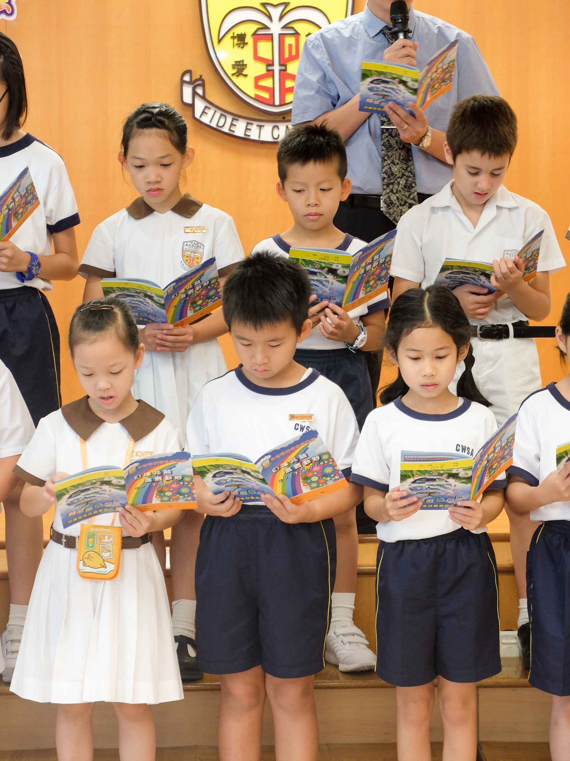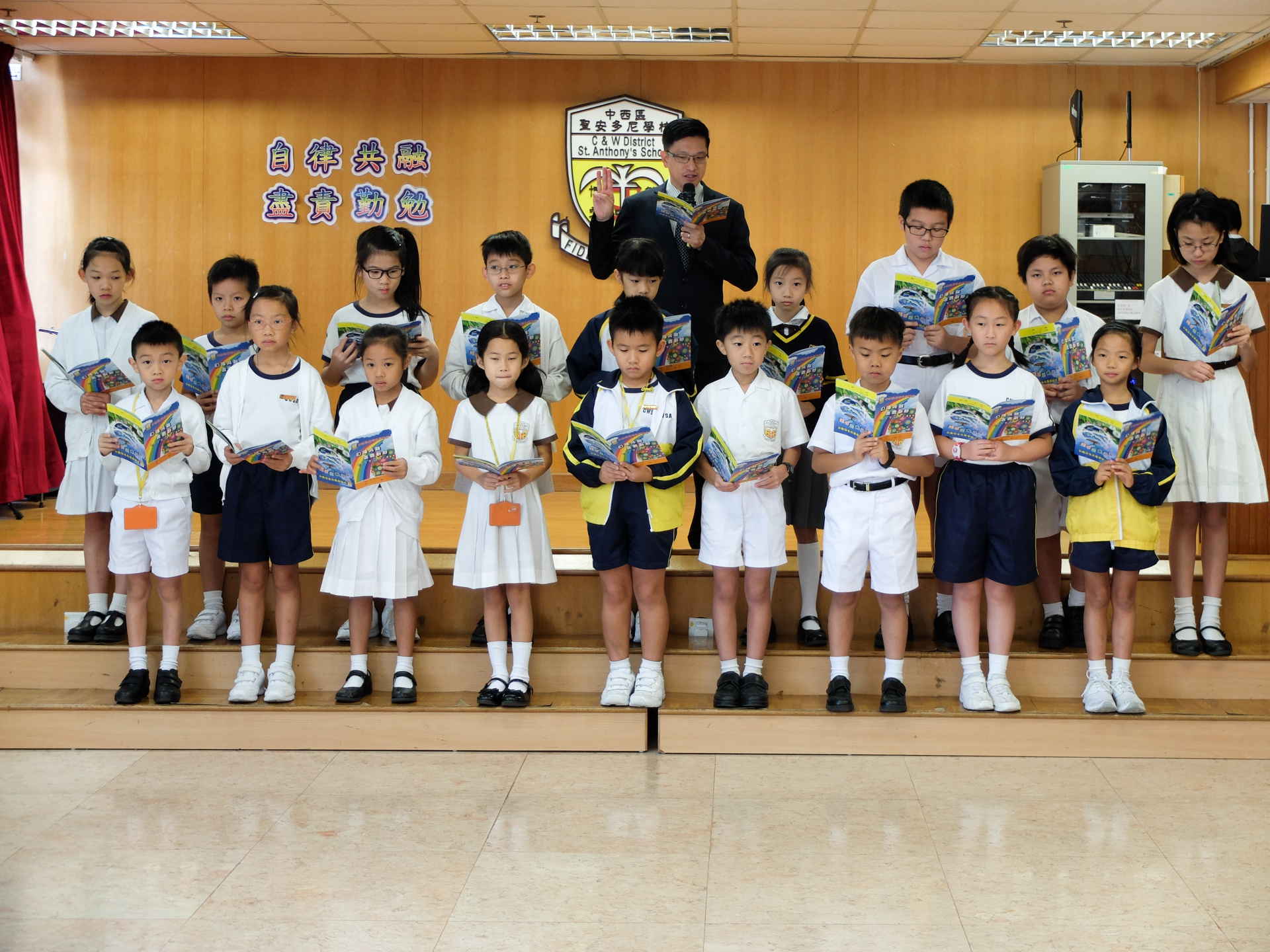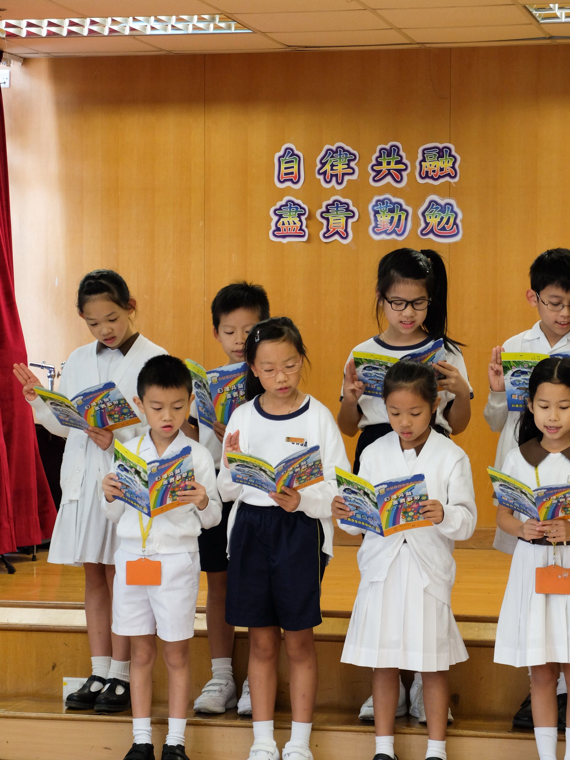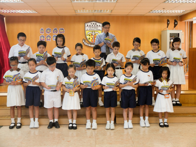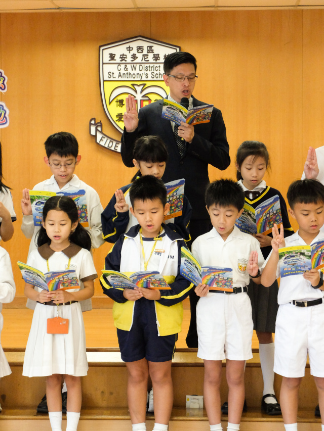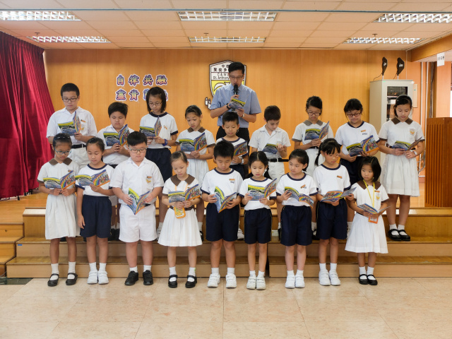 本年度校本主題是「自律共融 盡責勤勉」。當天由郭校長及劉副校長啟動本年度校本主題,並由郭校長帶領班代表進行宣誓,以開展本年度的校本課程活動。