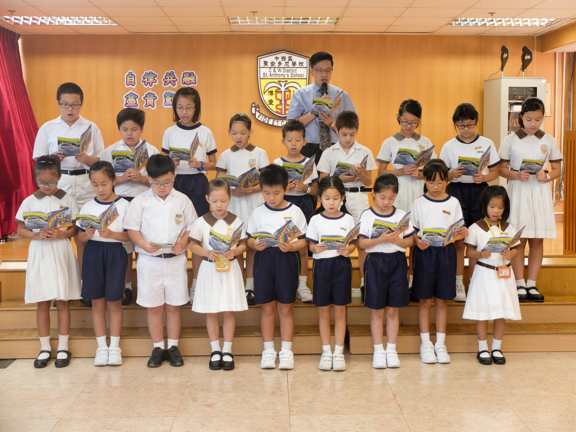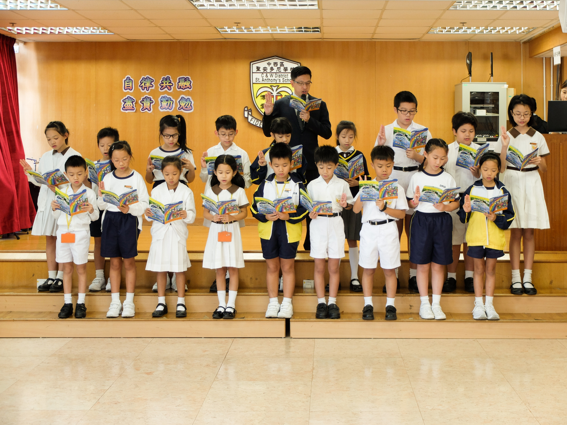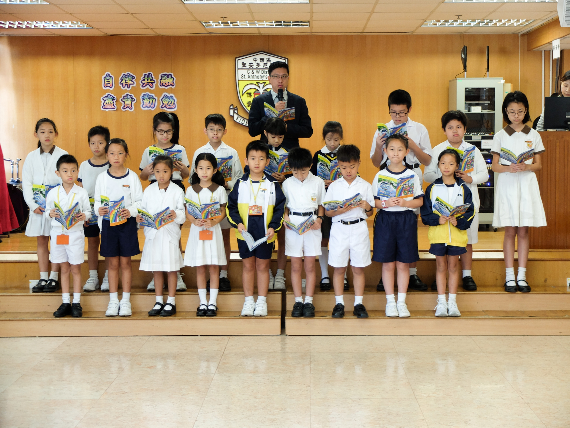 本年度校本主題是「自律共融 盡責勤勉」。當天由郭校長及劉副校長啟動本年度校本主題,並由郭校長帶領班代表進行宣誓,以開展本年度的校本課程活動。